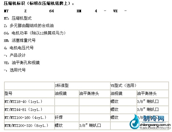 MTZ压缩机:特殊设计用于R407c、R134a、R404A和R507等HFC制冷剂,使用160PZ聚酯油作为润滑油的中高温压缩机,这些压缩机可以用于新的装置中,也可以在现有装置中替代美优乐MTE压缩机。