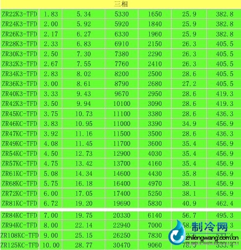ZR系列压缩机技术参数