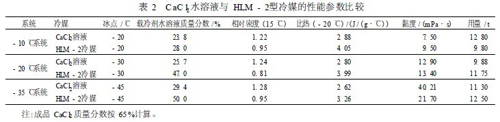 CaCl2 水溶液与HLM - 2型冷媒的性能参数比较见表2。