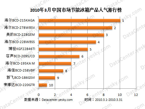 首先看一下:2010年3月中国市场节能冰箱人气排行榜