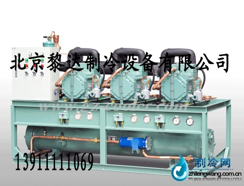 比泽尔并联机组灵活控制、高效节能; 采用多台优质的BITZER压缩机。并联制冷机组完美的机组设计、采用压力、温度控制压缩机运行、灵活的能量调节。并联制冷机组配置高效油分离器、油平衡控制系统、高效风冷V型或平板冷凝器、大容量储液器及优质进口品牌配件。并联制冷机组可按要求特殊设计电器控制系统。并联制冷机组应用广泛:适用于化工、矿产、大中型试验环境、冷库、食品加工、水产品加工等各类场合等,适用于R22、R404a、R507a、R134a制冷剂。